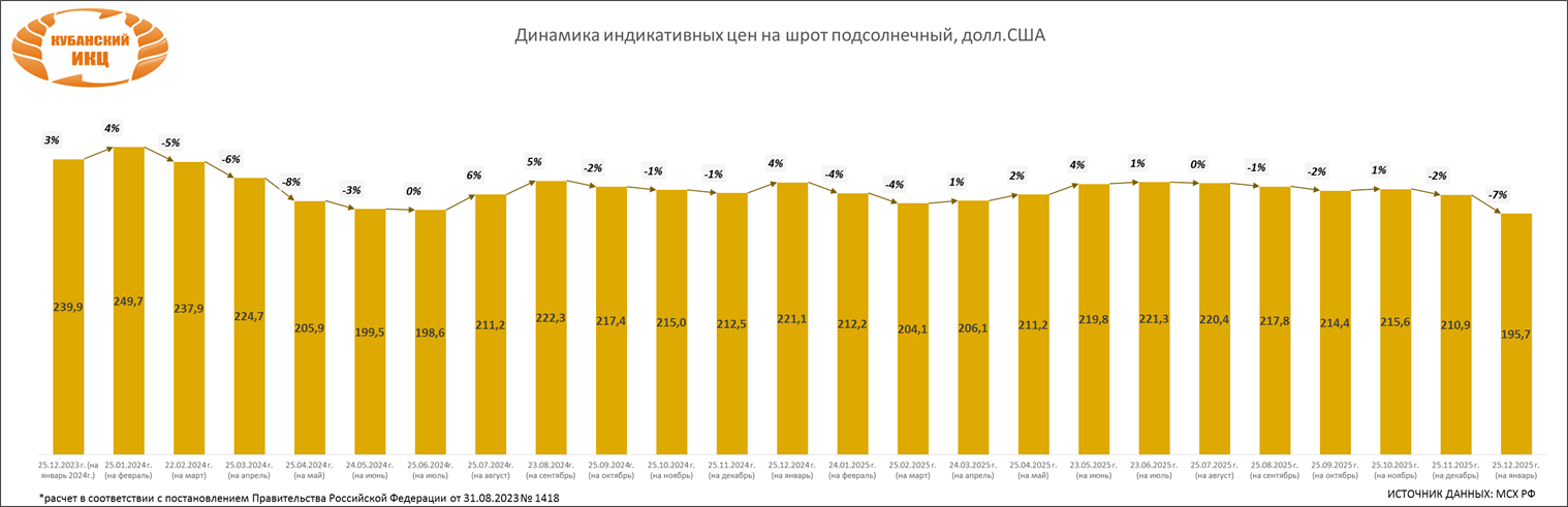 Индикативные цены на шрот подсолнечный на 25.12.2025