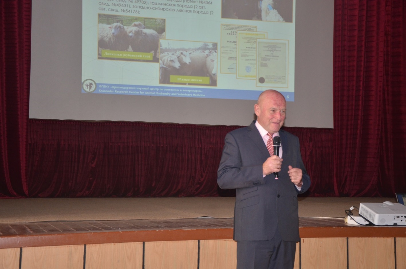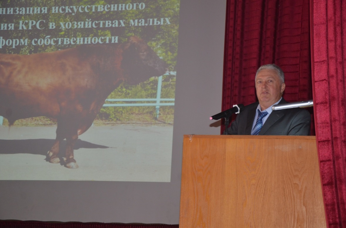 На тему: «Влияние генетических факторов на плодотворное осеменение коров и телок» выступил генеральный директор ООО «Научно – производственное объединение «Юг – Плем» Сацук Владимир Федорович.