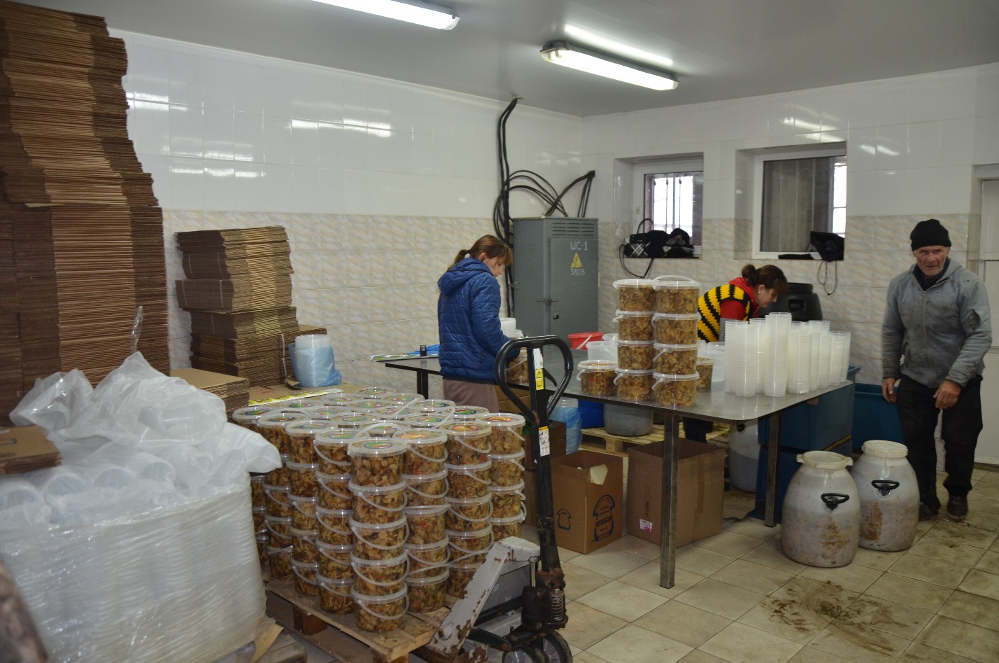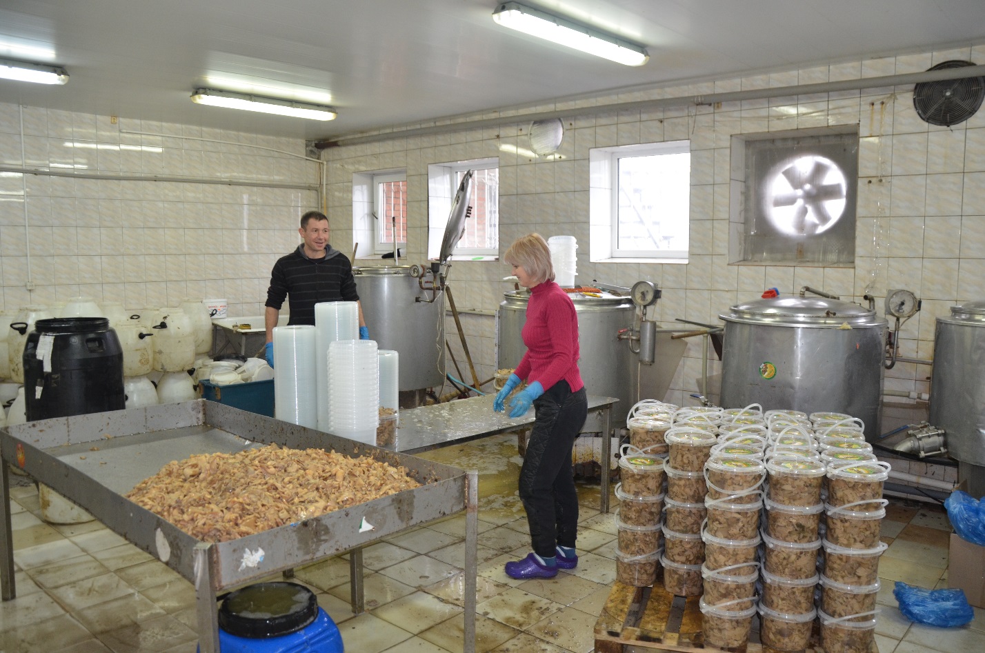 Участники семинара также ознакомились с технологией выращивания грибов, осмотрели производственные помещения, а также увидели процесс снятия и транспортировки урожая для дальнейшей переработки. В настоящее время в хозяйстве налажен выпуск маринованных опят и вешенки в пластиковой таре. При посещении производственного цеха была проведена дегустация готовой продукции.