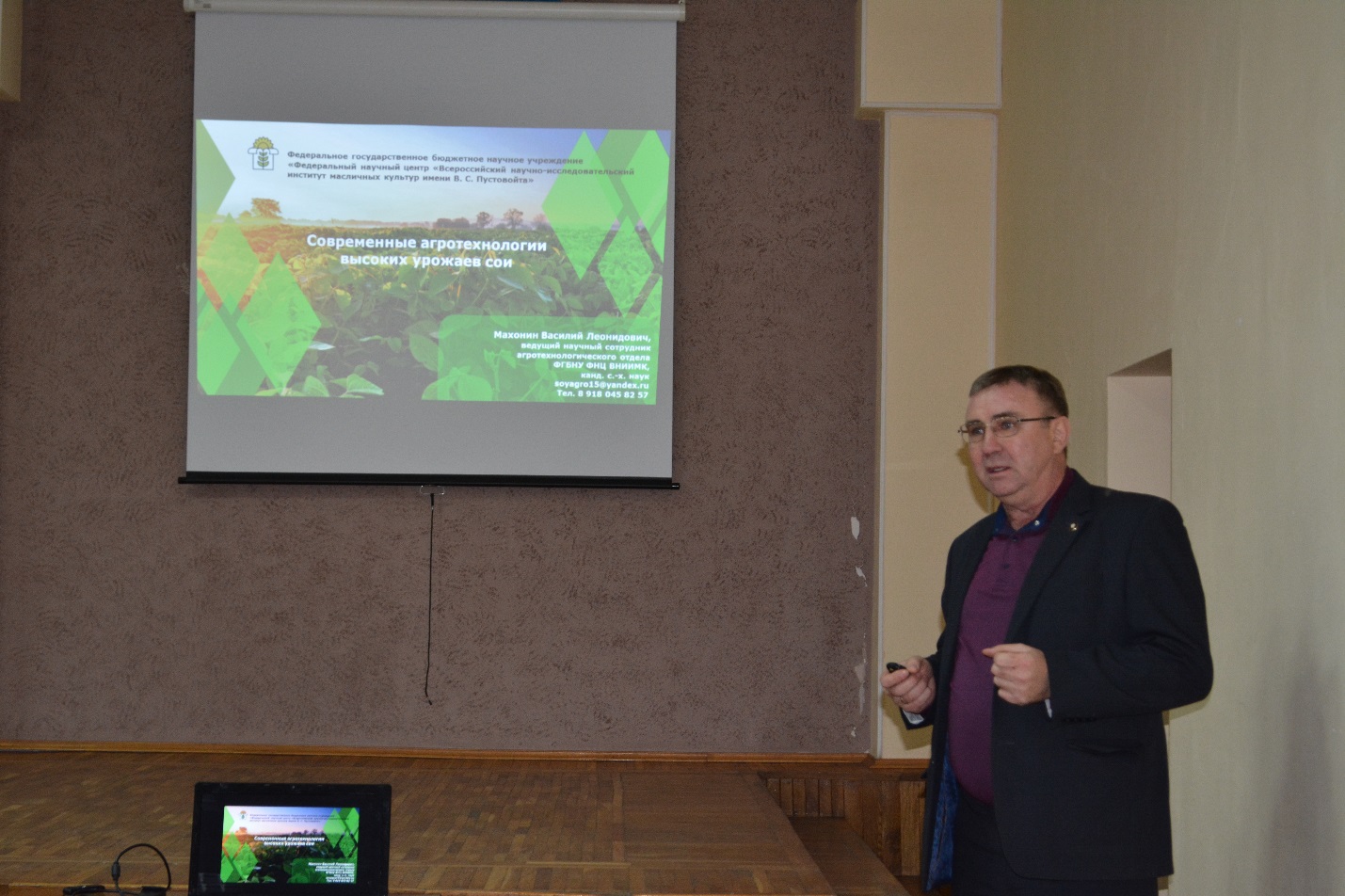 Махонин Василий Леонидович – заведующий лабораторией технологии возделывания сои, кандидат сельскохозяйственных наук Всероссийского научно-исследовательского института масличных культур им. Пустовойта В.С.;