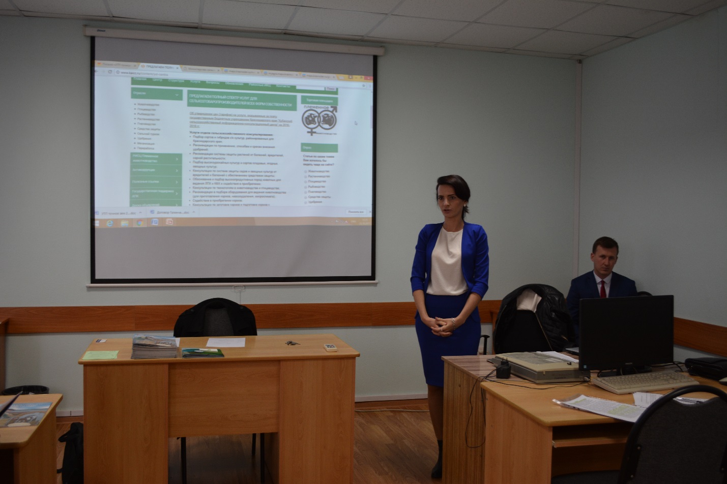 23 октября ГБУ КК «Кубанский сельскохозяйственный информационно-консультационный центр» совместно с Краснодарским региональным институтом агробизнеса, при участии министерства сельского хозяйства и перерабатывающей промышленности Краснодарского края провели семинар для сельскохозяйственных товаропроизводителей всех форм собственности края. Всего в работе семинаре приняли участие 28 человек.