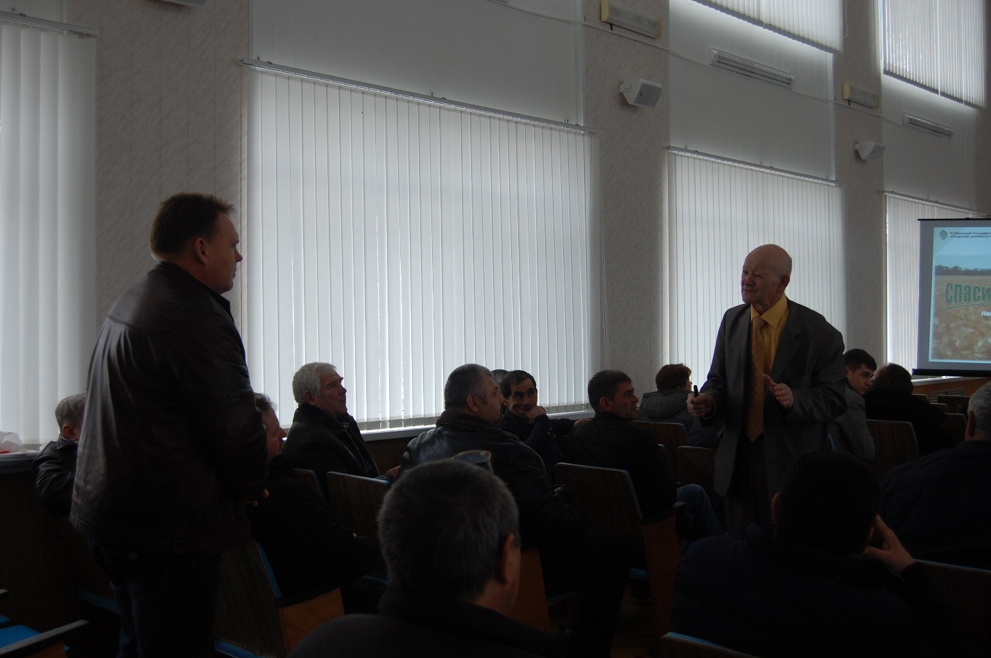 Открыл семинар заместитель руководителя краевого информационно-консультационного центра Дмитрий Александрович Усатый. Он кратко охарактеризовал ситуацию на рынке зерновых в Краснодарском крае, а также призвал присутствующих прислушаться к рекомендациям ученых по применению комплекса технологических мероприятий на озимом поле.