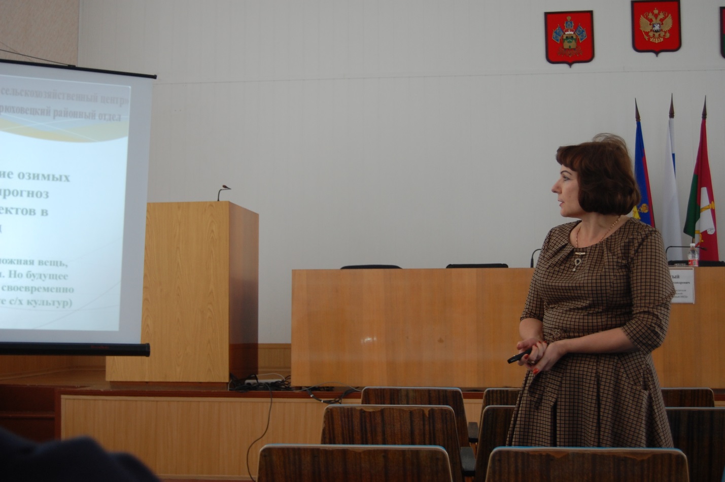 Начальник Брюховецкого районного отдела филиала ФГБУ «Россельхозцентр» по Краснодарскому краю Инна Михайловна Герасименко дала рекомендации по проведению основных защитных мероприятий на сельскохозяйственных культурах, а также дала прогноз фитосанитарной обстановки на озимом поле в 2018 году, кроме того, предостерегла присутствующих о возможном увеличении популяции мышевидных грызунов при наступлении благоприятных условий весной 2018 года, и в случае умеренно влажного лета к осени может произойти значительный подъем численности вредителей, поэтому есть необходимость периодически проводить профилактические мероприятия.