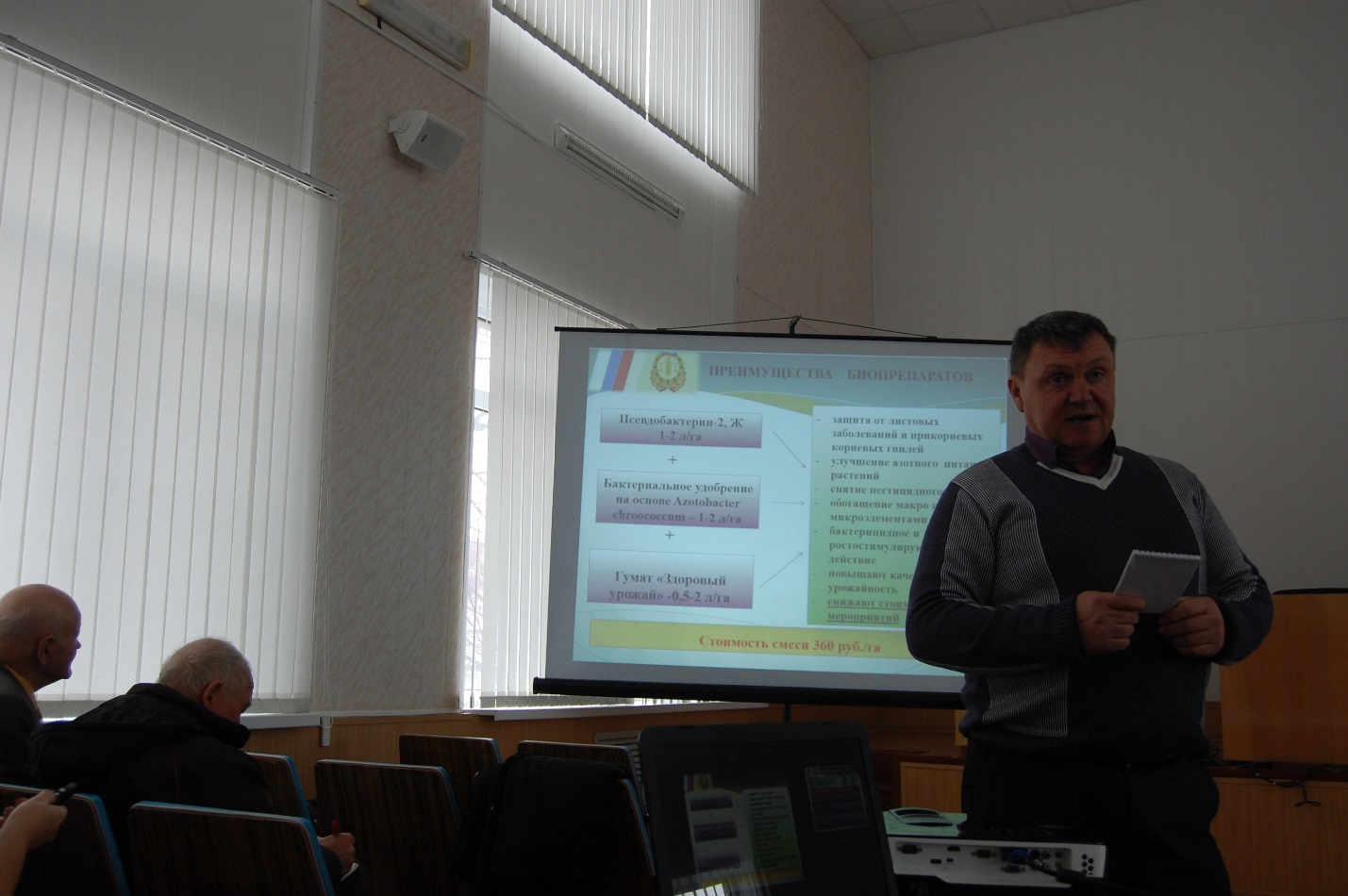 О применении биопрепаратов в опытном испытательном участке «Бейсуг», рассказал слушателям начальник опытного испытательного участка филиала ФГБУ «Россельхозцентр» по Краснодарскому краю Игорь Викторович Волошин, привел результаты испытаний различных биопрепаратов на озимых культурах и кукурузе.