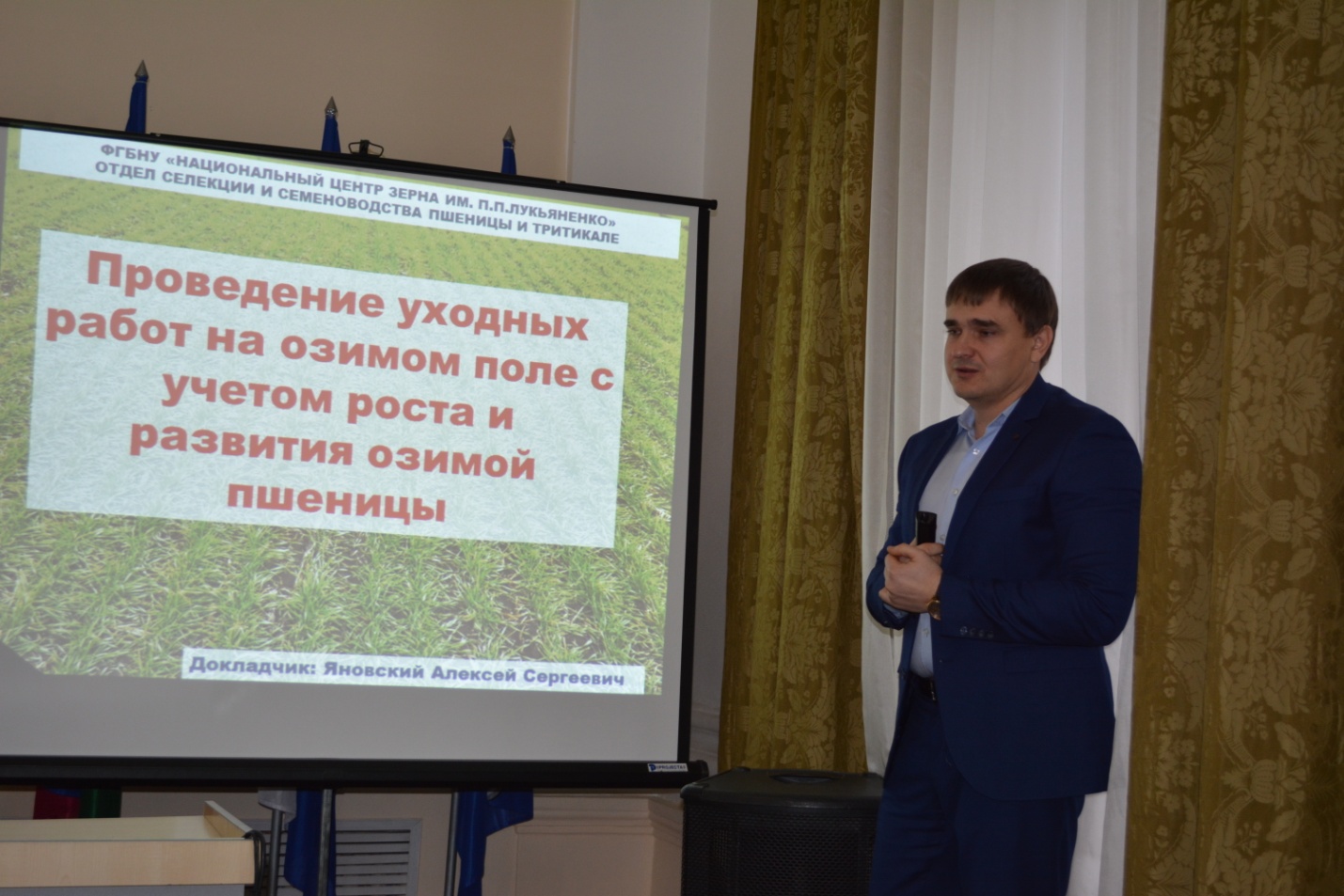 Об особенностях ухода за озимым полем в сложившихся условиях текущего года, селекционных достижениях и реализации урожайного потенциала озимых культур, районированных для условий Краснодарского края, доложил слушателям Яновский Алексей Сергеевич – ведущий научный сотрудник отдела селекции и семеноводства пшеницы и тритикале Национального центра зерна им. П. П. Лукьяненко, кандидат сельскохозяйственных наук.