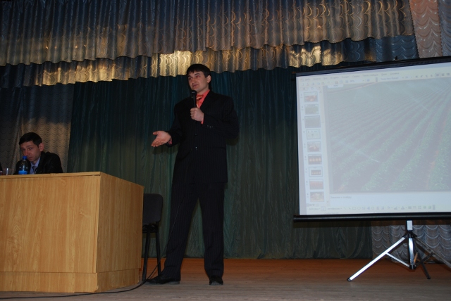 Открыл семинар-совещание и. о. заместителя главы района, начальника отдела сельского хозяйства муниципального образования Кущевский район Владимир Иванович Коваленко. Поприветствовав участников семинара-совещания, он коротко осветил успехи и трудности района на данный момент. О системе работы ИКС АПК в Краснодарском крае рассказал начальник отдела сельскохозяйственного консультирования ГУ КК «Кубанский сельскохозяйственный ИКЦ» Дмитрий Александрович Усатый.