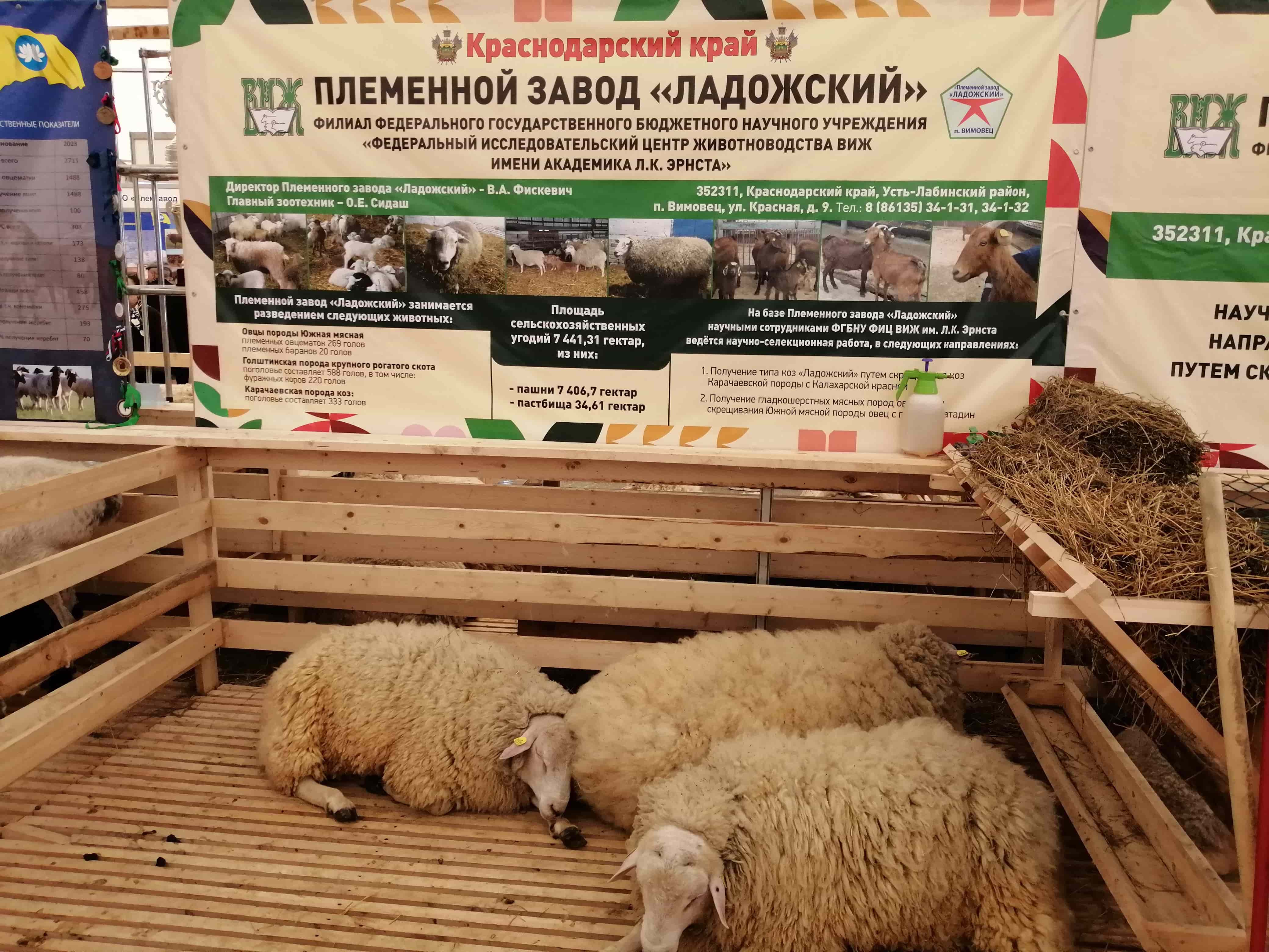 ФГБНУ ФИЦ ВИЖ им. Л.К. Эрнста – филиал Племенной за-вод «Ладожский» Усть – Лабинского района представил: двух баранов-производителей (южной мясной (юм) породы (юм)), одного ремонтного барана, двух поместных ярочек (юм–катадин) и двух помесных козочек.