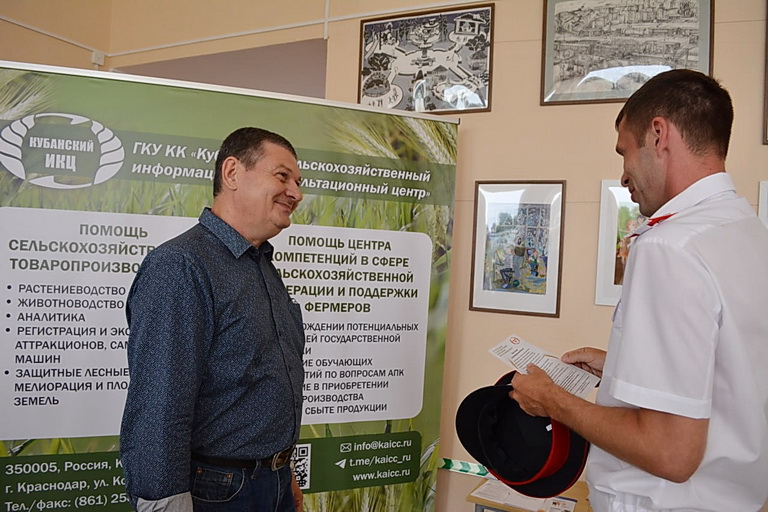 Кубанский ИКЦ, совместно с управлением малых форм хозяйствования и сельскохозяйственной кооперации краевого Минсельхоза также приняли активное участие в конференции: подробно рассказали присутствующим о возможной поддержке предпринимателей как в период организации, так и ведения хозяйственной деятельности.