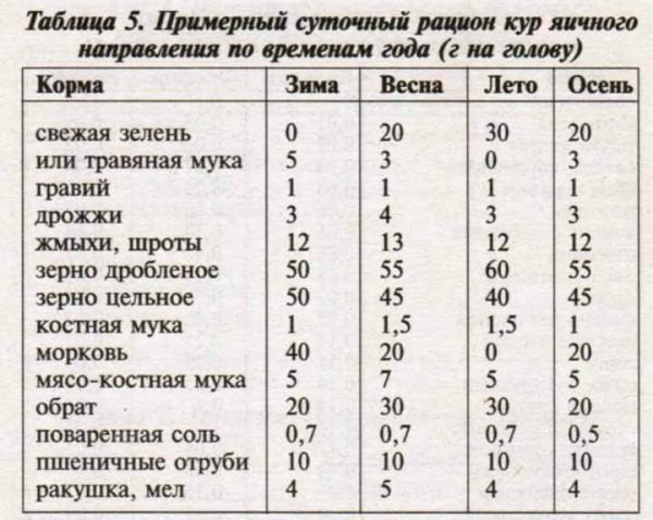 Перед периодом яйценоскости курам скармливают корм с повышенным содержанием протеина, кальция и аминокислот. Такой комбикорм используется до 28 недели, после чего процент кальция повышают до 4,1. В среднем на одну особь требуется 115-120 гр. смеси. Для улучшения работы пищеварительной системы в отдельной посуде всегда должен присутствовать известняк.