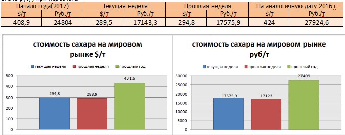 Цены на сахар-сырец на момент подготовки материала зафиксированы на уровне 289,5 $/т, и соответственно 17143 руб/т при пересчёте.