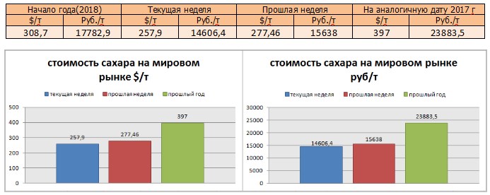 Цены на сахар-сырец на момент подготовки материала зафиксированы на уровне 257,9 $/т, и соответственно 14606,4 руб/т при пересчёте.