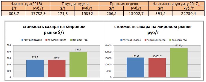 Цены на сахар-сырец на момент подготовки материала зафиксированы на уровне 271,8 $/т, и соответственно 15392 руб/т при пересчёте.
