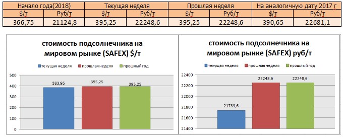 Цена подсолнечника на бирже SAFEX на момент написания была озвучена в значениях 395,25 $/т или 22248,6 руб/т.