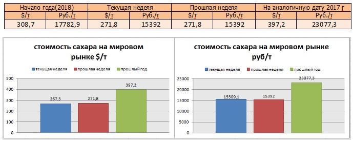 Цены на сахар-сырец на момент подготовки материала зафиксированы на уровне 271,8 $/т, и соответственно 15392 руб/т при пересчёте.
