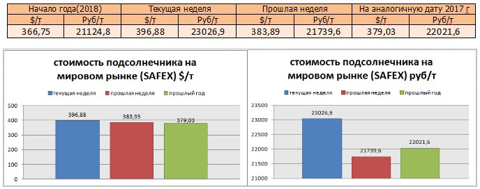 Цена подсолнечника на бирже SAFEX на момент написания была озвучена в значениях 396,88 $/т или 23026,9 руб/т.