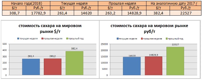 Цены на сахар-сырец на момент подготовки материала зафиксированы на уровне 261,4 $/т, и соответственно 14620 руб/т при пересчёте.