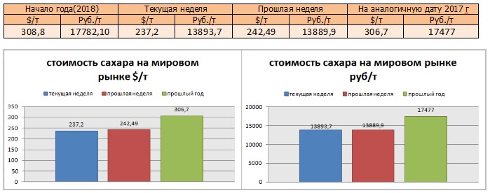 Цены на сахар-сырец на момент подготовки материала зафиксированы на уровне 237,2 $/т, и соответственно 13893,7 руб/т при пересчёте.