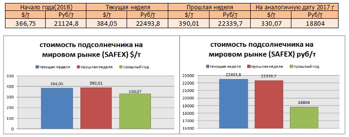 Цена подсолнечника на бирже SAFEX на момент написания была озвучена в значениях 384,04 $/т или 22493,8 руб/т.