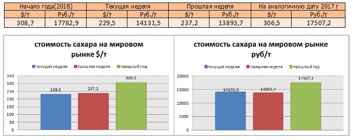Цены на сахар-сырец на момент подготовки материала зафиксированы на уровне 229,5 $/т, и соответственно 14131,5 руб/т при пересчёте.