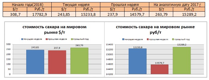 Цены на сахар-сырец на момент подготовки материала зафиксированы на уровне 243,85 $/т, и соответственно 15233,8 руб/т при пересчёте.