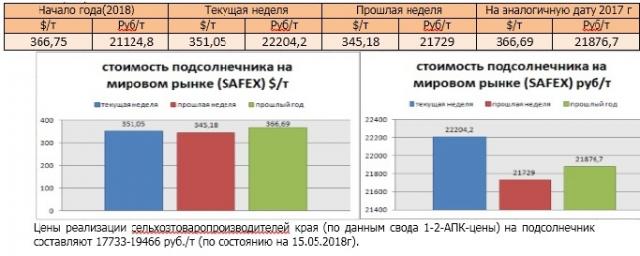 Цена подсолнечника на бирже SAFEX на момент написания была озвучена в значениях 351,05 $/т или 22204,2 руб/т.