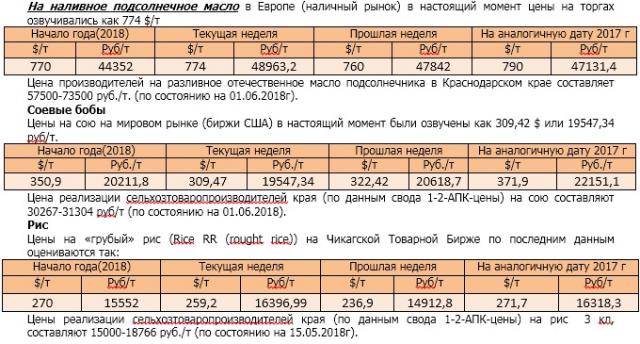 Цены реализации сельхозтоваропроизводителей края (по данным свода 1-2-АПК-цены) на пшеницу 3 класс – 10150-10433 руб./т, 4 класс – 9300-9910 руб./т, (по состоянию на 01.06.2018г.).
