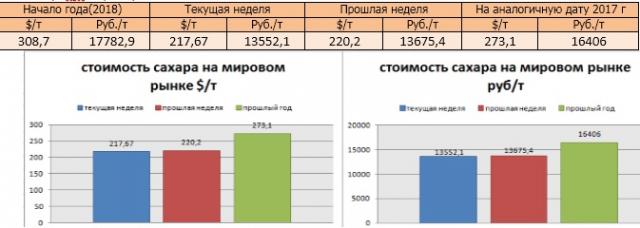 Цены на сахар-сырец на момент подготовки материала зафиксированы на уровне 217,67 $/т, и соответственно 13552,1 руб/т при пересчёте.