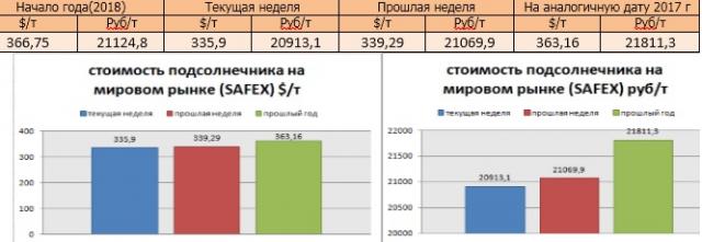 Цена подсолнечника на бирже SAFEX на момент написания была озвучена в значениях 335,9 $/т или 20913,1 руб/т.