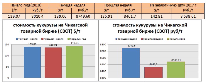 На момент написания статьи, цена кукурузы на мировых рынках (CBOT) была озвучена как 139,06 $/т или 8749,6 руб./т. По сравнению с данными прошлой недели, мы прослеживаем повышение цен в рублях и в валюте.