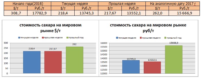 Цены на сахар-сырец на момент подготовки материала зафиксированы на уровне 218,4 $/т, и соответственно 13745,3 руб/т при пересчёте.