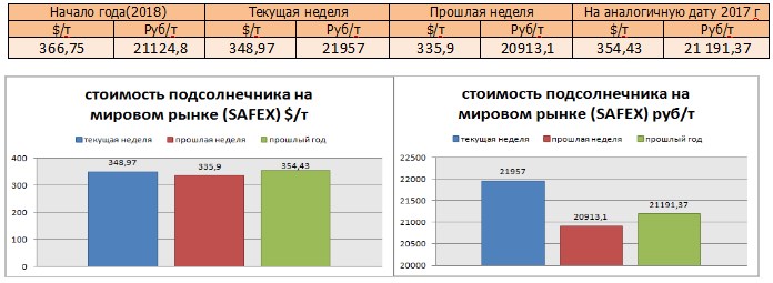 Цена подсолнечника на бирже SAFEX на момент написания была озвучена в значениях 348,97 $/т или 21957 руб/т.
