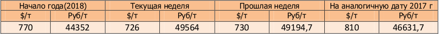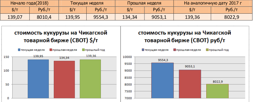 На момент написания статьи, цена кукурузы на мировых рынках (CBOT) была озвучена как 139,95 $/т или 9554,3 руб./т. По сравнению с данными прошлой недели, мы прослеживаем понижение цен в валюте.