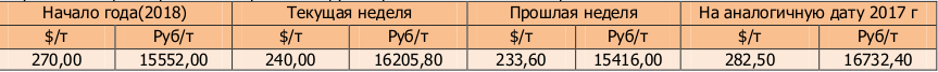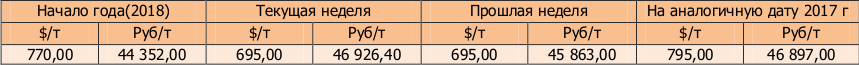 На момент написания статьи, цена кукурузы на мировых рынках (CBOT) была озвучена как 144,48 $/т или 9755,2 руб./т. По сравнению с данными прошлой недели, мы прослеживаем понижение цен в валюте, но не в рублевом эквиваленте.