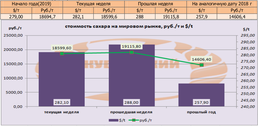 Цены на сахар-сырец (США No11) на момент подготовки материала зафиксированы на уровне соответственно 18599,6 руб/т при пересчёте.