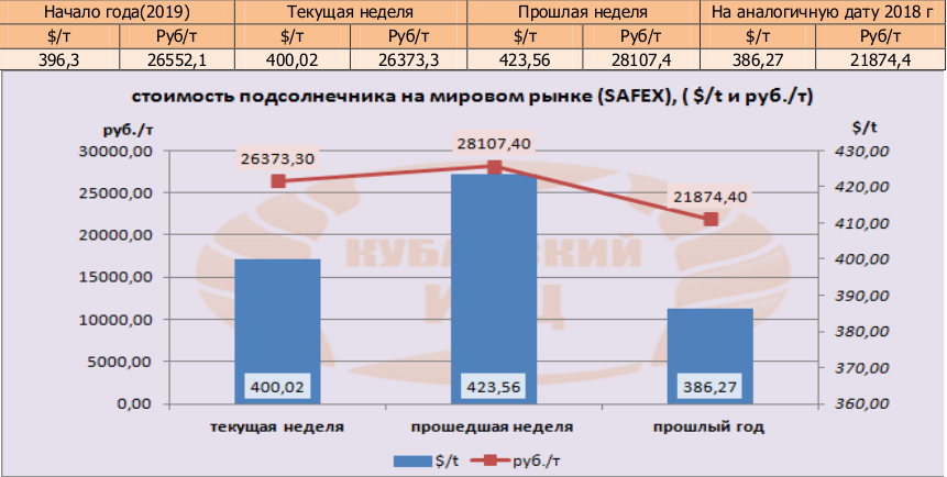 Цена подсолнечника на бирже SAFEX на момент написания была озвучена в значениях 400,02 $/т или 26373,3 руб/т
