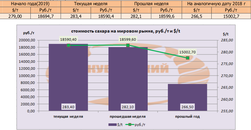 Цены на сахар-сырец (США No11) на момент подготовки материала зафиксированы на уровне соответственно 18590,4 руб/т при пересчёте.