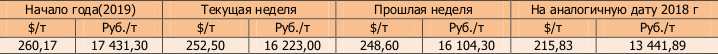 Цена продовольственный ячмень на мировом рынке на этой неделе была отмечена на бирже NCDEX Kolkata, Торги по состоянию на 15.04.2019 года составили 252,5 $/t или 16223 руб./тн, что по сравнению с прошлой неделей больше в валюте. В рублёвом соотношении, цена также повысилась.