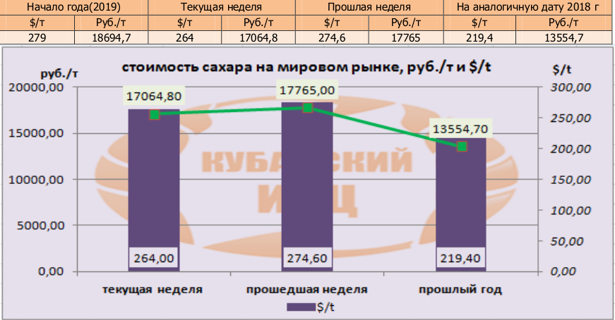Цены на сахар-сырец (США No11) на момент подготовки материала зафиксированы на уровне соответственно 17064,8 руб./т при пересчёте.