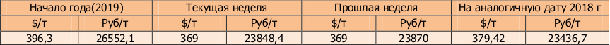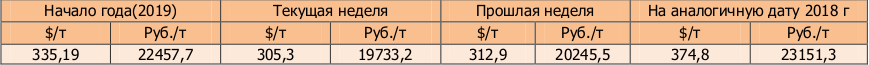 Цена подсолнечника на бирже SAFEX на момент написания прошлого обзора была озвучена в значениях 369,00 $/т или 23848,4 руб/т.