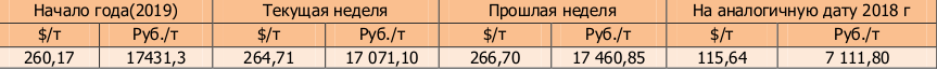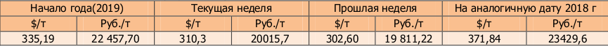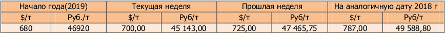 Цена продовольственный ячмень на мировом рынке на этой неделе была отмечена на бирже NCDEX Kolkata, Торги по состоянию на 20.05.2019 года составили 264,7 $/t или 17071,1 руб./тн, что по сравнению с прошлой неделей ниже в валюте. В рублёвом соотношении, цена также снизилась.