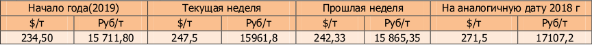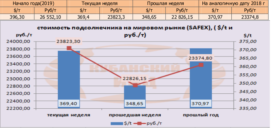 Цена подсолнечника на бирже SAFEX на момент написания прошлого обзора была озвучена в значениях 369,4 $/т или 23823,3 руб/т.