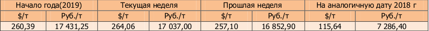 Цена продовольственный ячмень на мировом рынке на этой неделе была отмечена на бирже NCDEX Kolkata, Торги по состоянию на 10.06.2019 года составили 264,06 $/t или 17037,00 руб./тн, что по сравнению с прошлой неделей больше в валюте. В рублёвом соотношении, цена наоборот, повысилась.