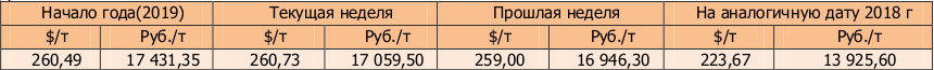 Цена продовольственный ячмень на мировом рынке на этой неделе была отмечена на бирже NCDEX Kolkata, Торги по состоянию на 19.08.2019 года составили 260,73 $/t или 17059,5 руб./тн, что по сравнению с прошлой неделей больше в рублях и в валюте.
