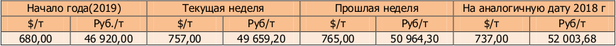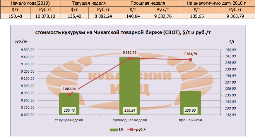 На момент написания статьи, цена кукурузы на мировых рынках (CBOT) была озвучена как 135,4 $/т или 8882,24 руб./т. По сравнению с данными прошлой недели, мы прослеживаем повышение цен в валюте, и в рублях.