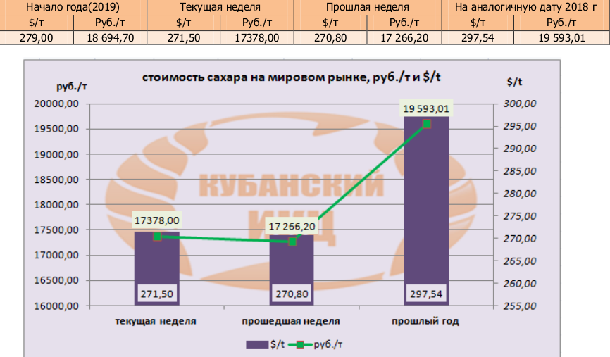 Цены на сахар-сырец (США No11) на момент подготовки материала зафиксированы на уровне 271,5 $/т, и соответственно 17378,0 руб./т при пересчёте.