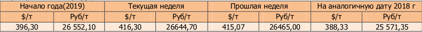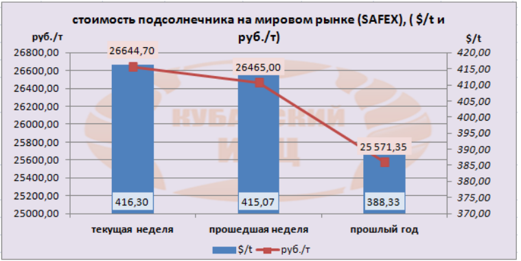 Цена подсолнечника на бирже SAFEX (поставка в декабре) на момент написания обзора была озвучена в значениях 416,30 $/т или 26644,7 руб/т.