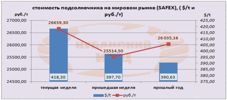 Цена подсолнечника на бирже SAFEX (поставка в декабре) на момент написания обзора была озвучена в значениях