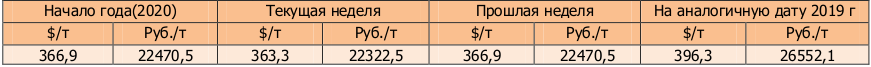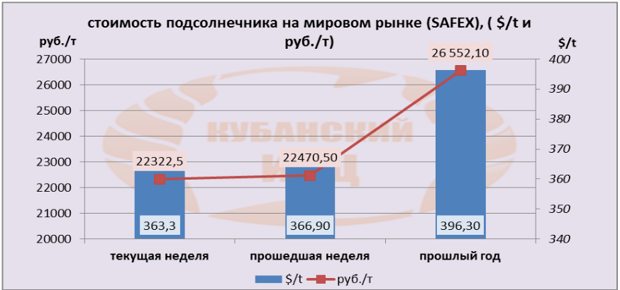 Цена подсолнечника на бирже SAFEX (поставка в декабре) на момент написания обзора была озвучена в значениях 363,3 $/т или 22322,5 руб./т.