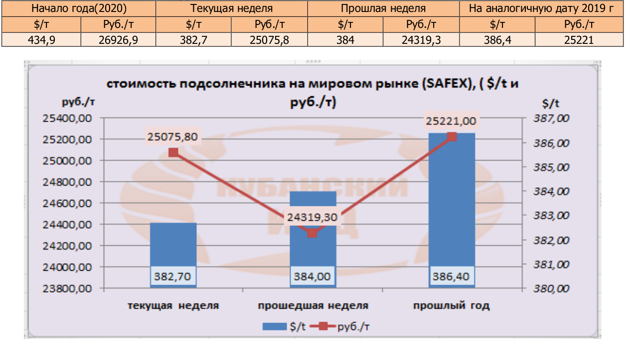 Цена подсолнечника на бирже SAFEX (поставка в феврале) на момент написания обзора была озвучена в значениях 382,7 $/т или 25075,8 руб./т.
