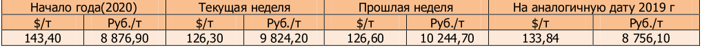 На момент написания статьи, на Чикагской товарной бирже (СВОТ) предлагают $210,80 за тонну пшеницы, или 16391,8 руб./т в перерасчёте на рубли, что больше в валюте, но не в рублевом эквиваленте по сравнению с прошлой неделей. По сравнению с аналогичной датой прошлого года цены на пшеницу выше в валюте, и в рублях.